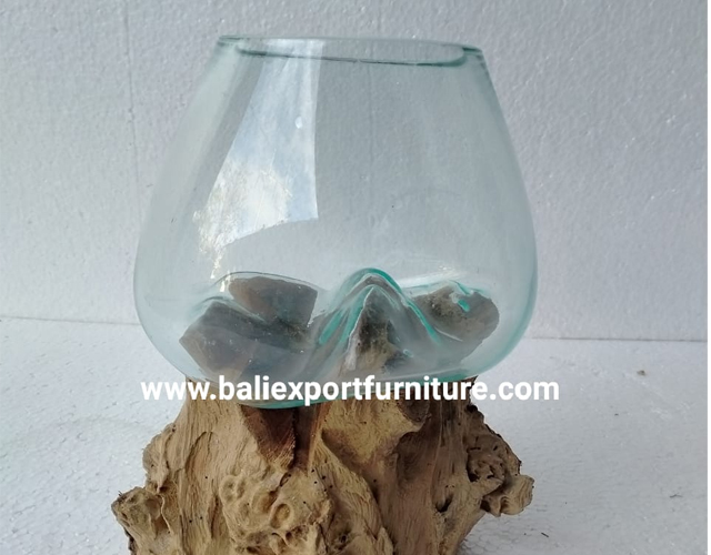 Molten Glass on wood look beautiful in the room. We make this molten glass on wood as Terrarium decor. And they are always having good selling in many countries destination because they look beautiful and stunning in many kind type of rooms.