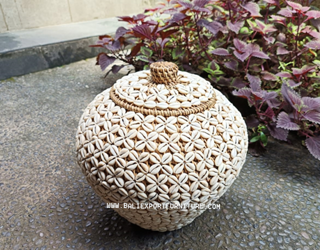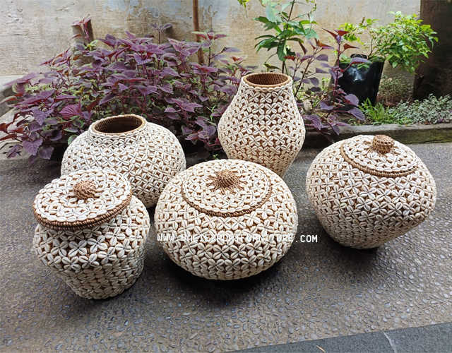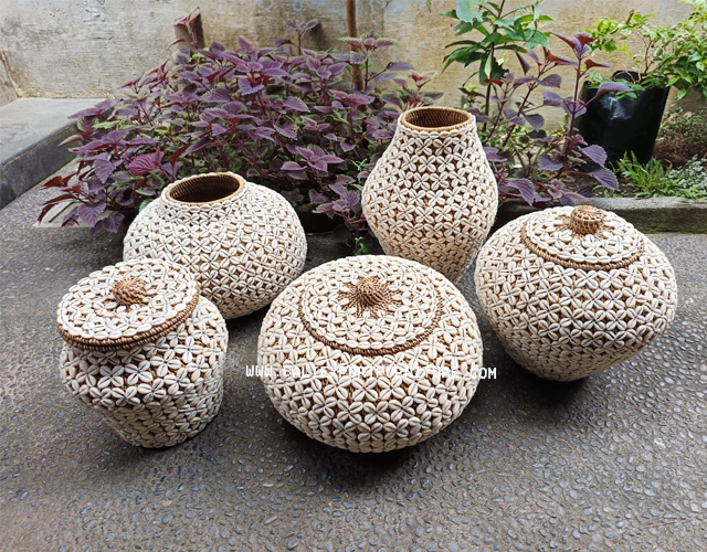 This woven seashell basket has an exquisite design, with delicate seashells intricately interwoven to form an alluring pattern. Their skill captures the beauty of the ocean, creating a unique and visually stunning piece that adds a touch of coastal elegance to any space.