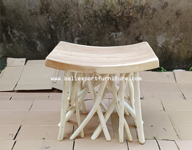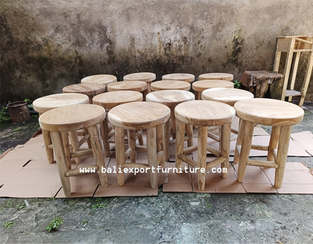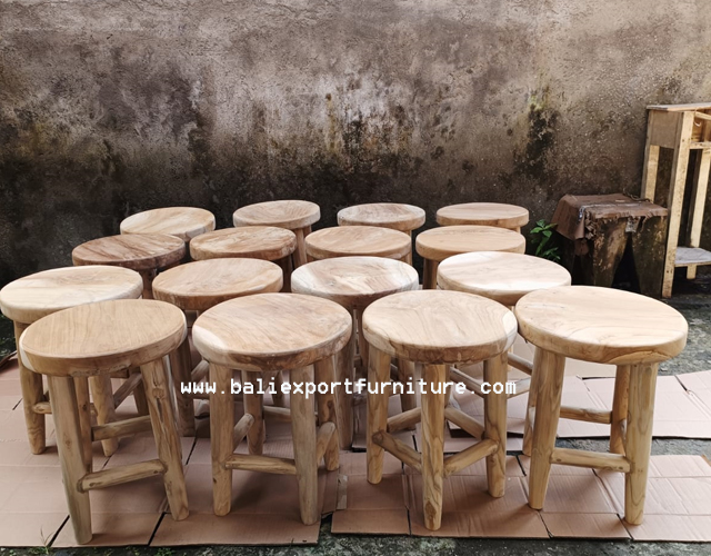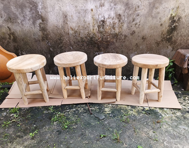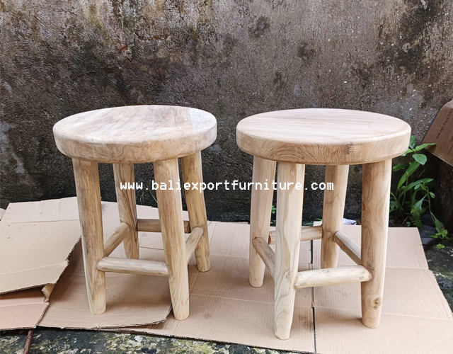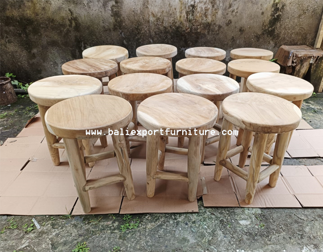 This stool looks minimalist and modern, with its shape your room looks clean and displays a fresh impression through its natural wood strokes. The material is teak and other woods that have been tested for quality. This wooden stool embodies both functionality and aesthetic appeal.