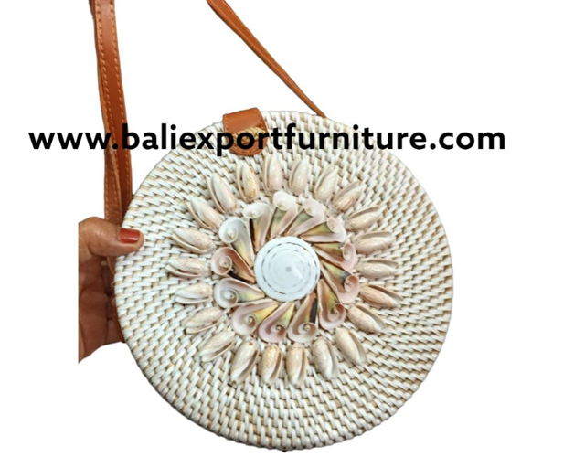 Woven Rattan Sling Bag with seashell
